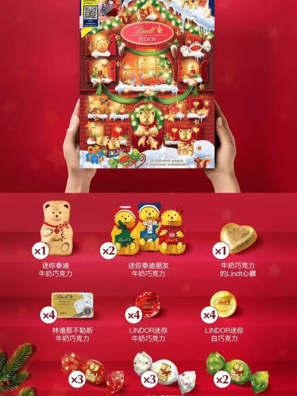 瑞士蓮 小熊 聖誕🎄日曆 28粒 朱古力禮盒170G 🧸Lindt TEDDY聖誕朱古力倒數日記🎅🏼 🌟必備‼️超級搶手的聖誕倒數日曆🎄🗓 📣📣X‘max限定日期愈近愈難買😱 🎄🎄每格櫥窗充滿驚喜🎉日曆共有2⃣4⃣格�從12月的第1天開始每天開1格、天天都有小驚喜…💝1天1顆牛奶朱古力🍫�一路開到平安夜🎅🏼隔天就迎接聖誕節啦~😍🎉 ✈️Lindt 瑞士蓮巧克力是🇧🇪德國百年朱古力老品牌🎉品質都非常優良🎀裡面有不同形狀的朱克力 來之瑞士的百年朱古力品牌,每個小窗戶後都藏著一粒不同形狀的朱古力 小熊,愛心,星星,每款都是聖誕節日限定造型 濃郁的牛奶朱古力,絲滑的榛子夾心朱古力,充滿聖誕的浪漫和美好。從聖誕月12月1日開始,28粒朱古力,讓幸福每日陪著您。一起感受聖誕月的幸福甜蜜吧! EXP:2026/03/3 數量有限,售完即止
