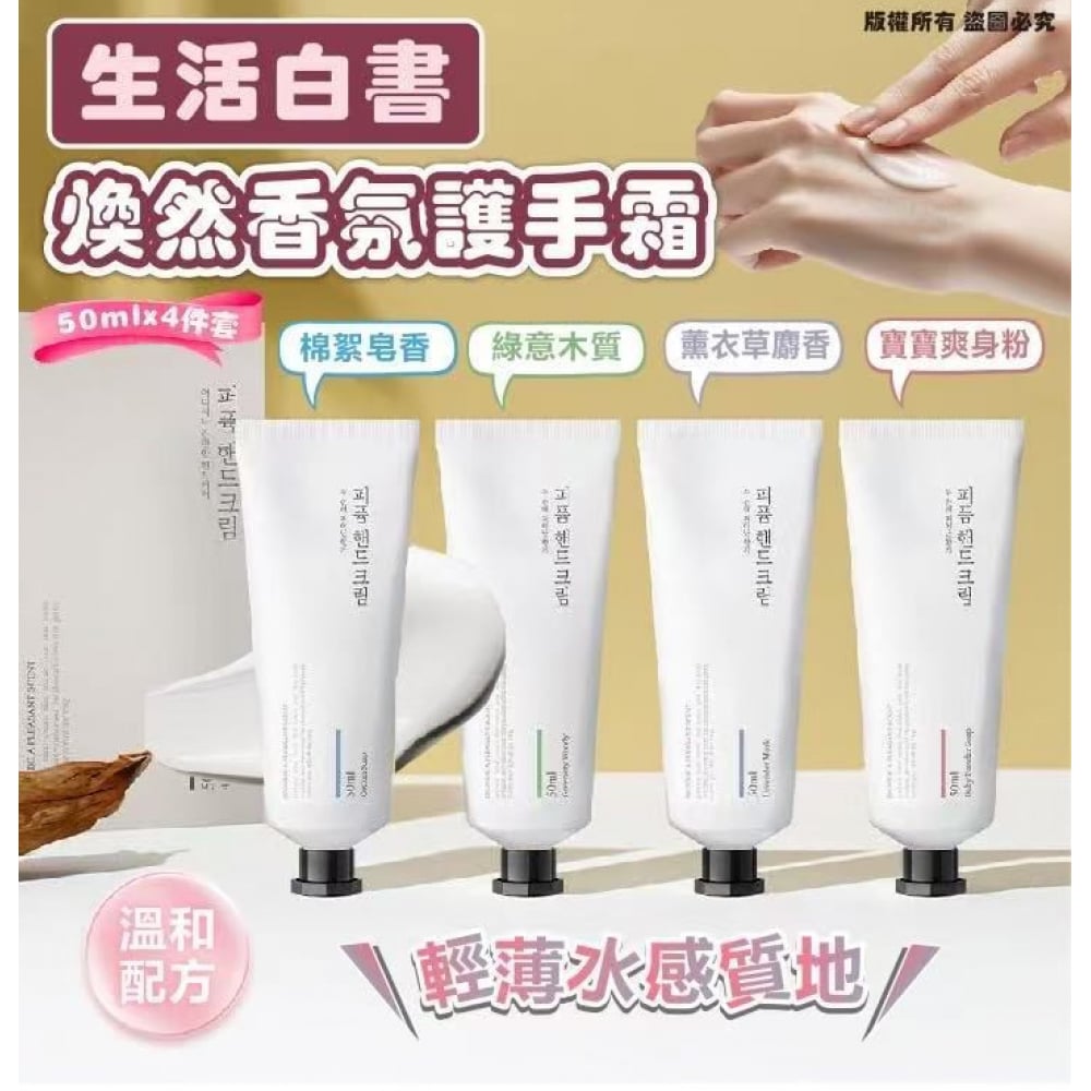 韓國 生活白書 煥然香氛護手霜50ml×4支 (每個香味各一支)